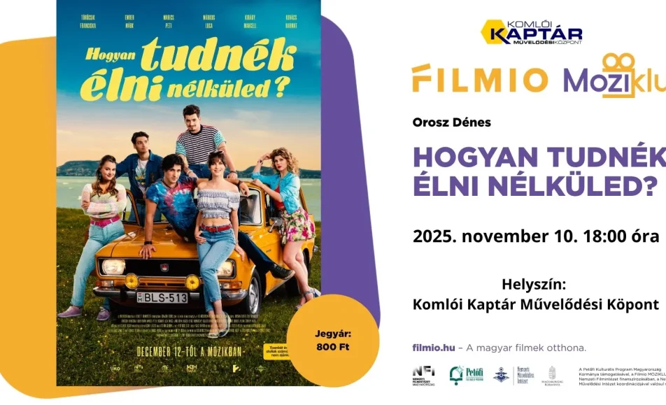 Kedves Közönségünk! Következő Moziklub vetítésünk november 10-én 18:00 órakor a kasszasikerű Hogyan tudnék élni nélküled? című filmmel folytatódik. Mire lehet számítani? Szerelemre, féltékenységre, kavarodásra, néhány csókra, néhány pofonra, egy balatoni nyárra, ami megváltoztatja néhány fiatal életét. És sok-sok jó zenére!...