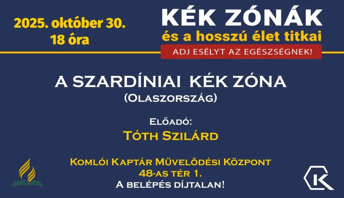 Október 30-án Kék zóna előadásunk alkalmával Szardínia varázslatos szigetét ismerhetjük meg. Vajon miért élnek ilyen sokáig és egészségesen e sziget lakói? Mit esznek, milyen az életmódjuk, milyen hagyományaik, szokásaik vannak? Jöjjenek el és megkapják a válaszokat a kérdésekre.  Az előadás után, hogy már megszokhatták, kóstolóval várjuk Önöket, ahol igazi szardíniai ízekkel zárjuk az estét.
