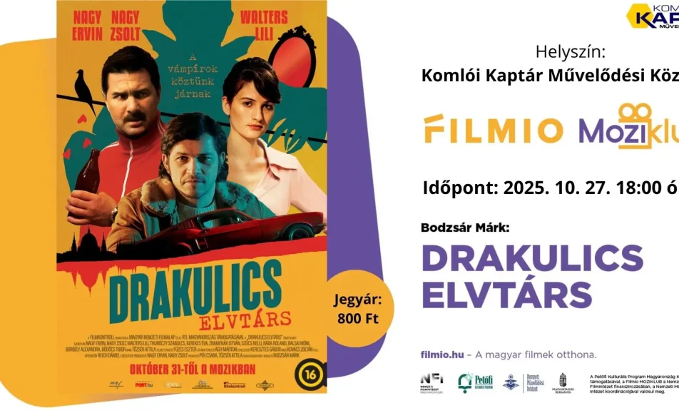 Jegyek már kaphatók pénztárunk nyitvatartási idejében és a vetítés előtt a helyszínen.