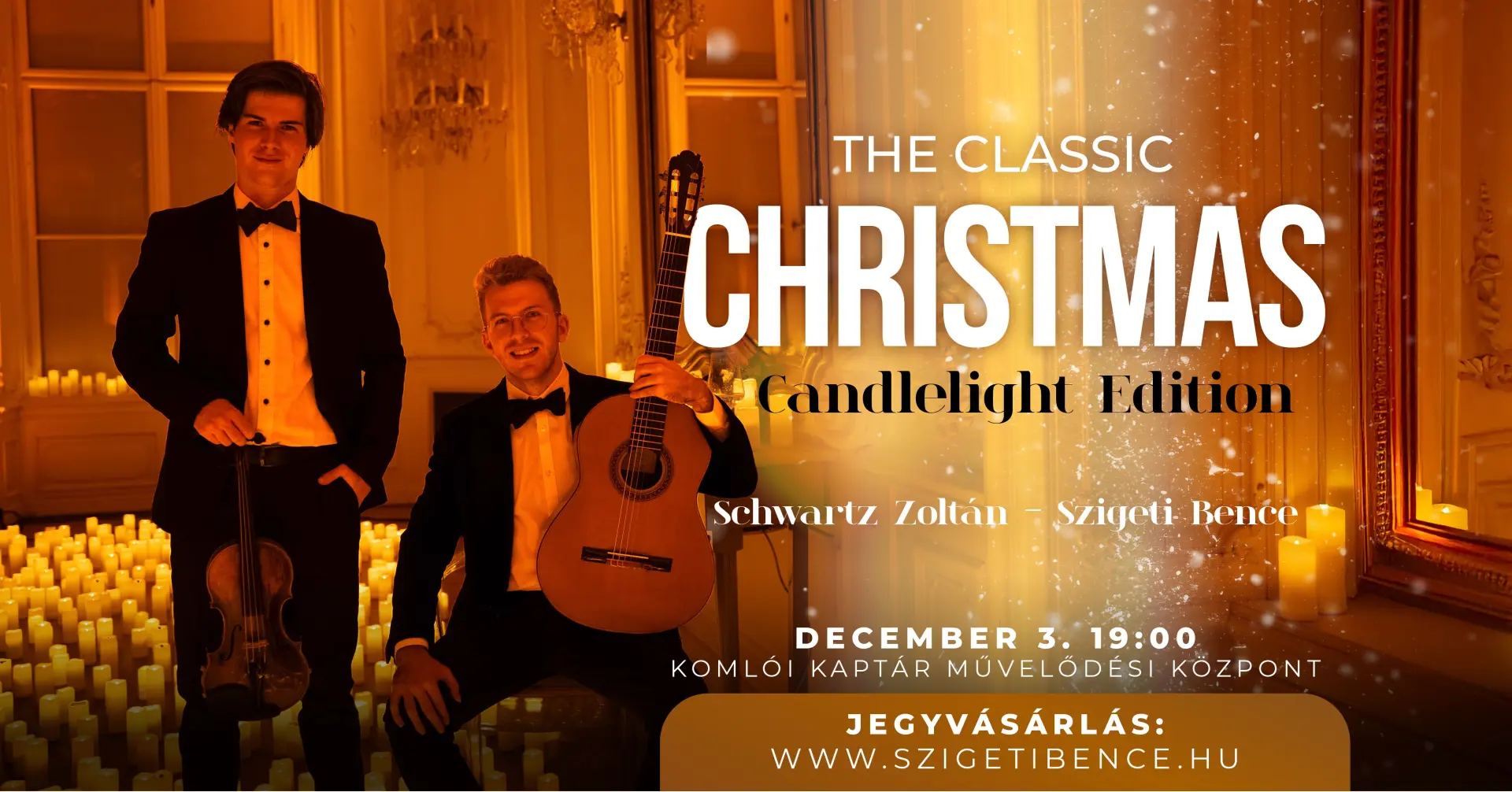 Szeretettel ajánljuk ehhez „The classic christmas candlelight edition” Szigeti Bence gitárművész és Schwartz Zoltán hegedűművész gyertyafényes koncertjét 2025. december 3-án a Kaptár Művelődési Központ Kamaratermében 19 órai kezdettel.