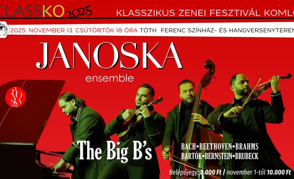 Ondrej Janoska – hegedű  Roman Janoska – hegedű  Frantisek Janoska – zongora  Julius Darvas – nagybőgő  🌟 JANOSKA Ensemble a ClassiKo fesztiválon, Komló szívében! 🌟 A nemzetközi hírű JANOSKA ensemble most először érkezik Komlóra, hogy a ClassiKo fesztivál színpadán varázsolja el a közönséget. A...